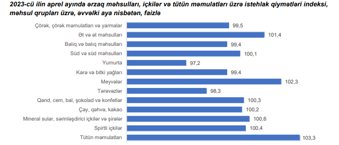 2023-cü ilin aprel ayında ərzaq məhsulları, içkilər və tütün məmulatları üzrə istehlak