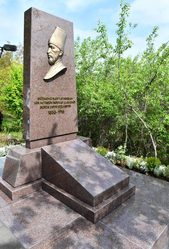 Azərbaycan Prezidenti Cıdır düzündə Mir Möhsün Nəvvab Qarabağinin Heydər Əliyev Fondu tərəfindən bərpa olunan məzarını ziyarət edib.