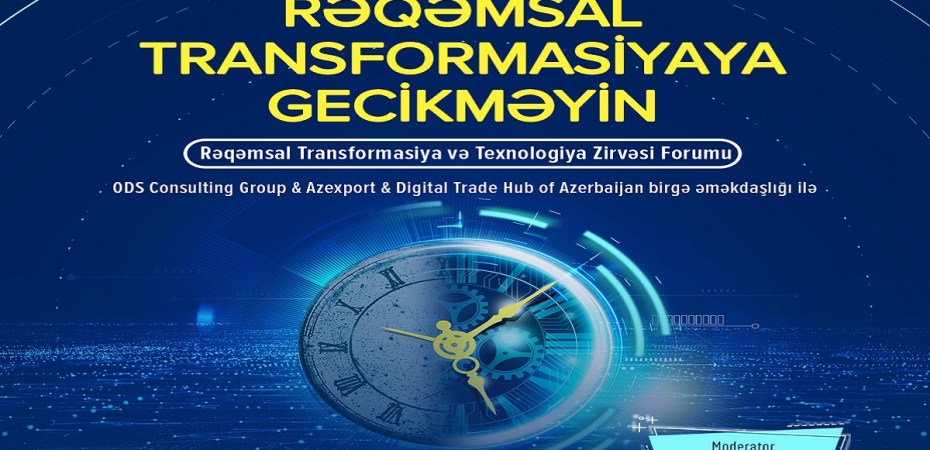 İqtisadi İslahatların Təhlili və Kommunikasiya Mərkəzinin rəqəmsal layihələri olan Azexport.az portalı və Rəqəmsal Ticarət Qovşağı ilə Türkiyənin “ODS Consulting Group” şirkətinin birgə təşkilatçılığı əsasında “Rəqəmsal Transformasiya və Texnologiya Zirvəsi Forumu” keçiriləcək.