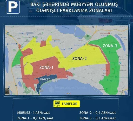 Nəqliyyat vasitələrinin parklanması üçün saat 22:00-dan saat 07:00-dək, eləcə də həftənin bazar günləri ödəniş tələb olunmayacaq.