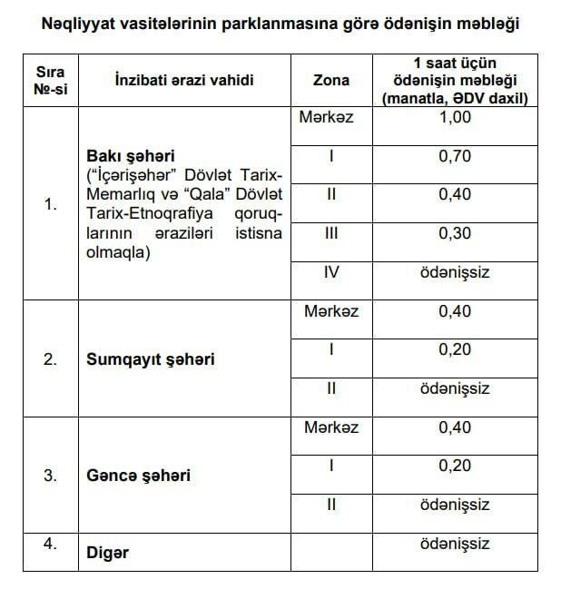 “Nəqliyyat vasitələrinin parklanmasına görə ödənişin məbləği” yalnız dövlətə məxsus parkinqlərdə qüvvədə olacaq.