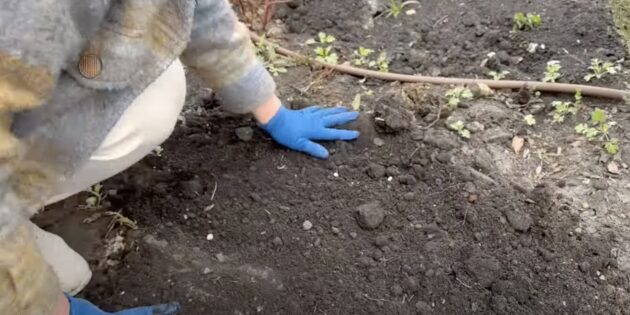 За 2–3 недели до высадки луковиц внесите на 1 м² клумбы 5 л компоста, 100 г суперфосфата и 50 г сульфата калия. Перекопайте почву со всеми компонентами на штык лопаты и разровняйте поверхность граблями.