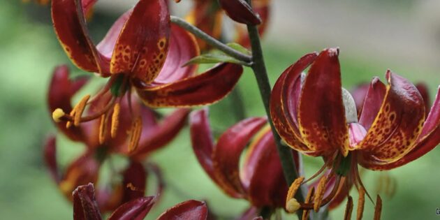 Раньше всего зацветают лилии Мартагон — уже в первой половине июня. Они стойко переживают суровые зимы и считаются устойчивыми к болезням и вредителям. Растения могут достигать высоты до 2 м и способны расти на одном месте без пересадки до 20 лет. Их легко узнать по цветам, которые стремятся вниз и напоминают колокольчики. Чаще всего Мартагоны имеют лёгкий и ненавязчивый аромат.