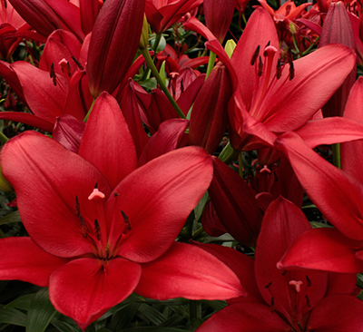 Азиатские гибриды начинают цвести уже в середине июня. Неприхотливые и морозостойкие лилии этого вида вырастают от 20 до 150 см в высоту. Цветки бывают простыми и махровыми и совсем не имеют запаха.