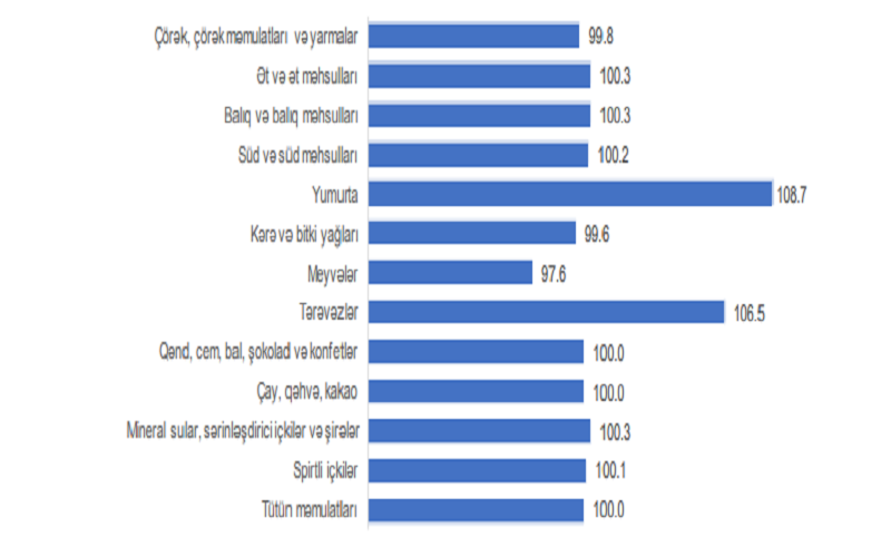 indeksi, məhsul qrupları üzrə, əvvəlki aya nisbətən, faizlə
