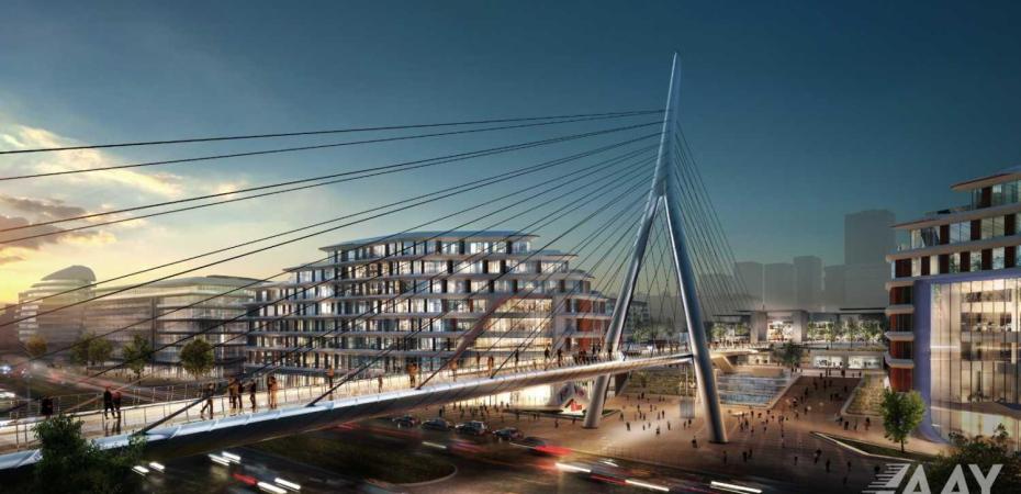 “Bakı Ağ Şəhər” yol infrastrukturunun yenidən qurulması layihəsi çərçivəsində 8 Noyabr prospekti üzərindən Bakı “Ağ Şəhər” layihəsinin Fəvvarələr meydanı parkını və Ağ Şəhər Bulvarını birləşdirən metal konstruksiyalı, müasir arxitekturaya malik yerüstü piyada körpüsü inşa edilib.